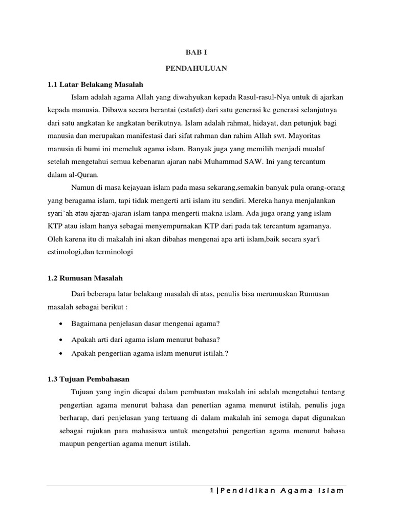 Pendidikan Agama Islam Islam Secara Etimologi Dan Terminologi Pdf